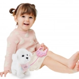 Denne bløde og krammevenlige plyshund på 22 cm giver masser af glæde med realistiske bevægelser og lyde. Kablet med controller tilsluttes i åbningen på halsen og gør det nemt at styre gang og effekter. Kombinationen af berøring, klap og knapper gør legen intuitiv og sjov.