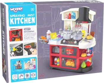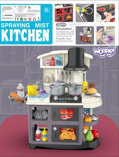 Det interaktive køkken WOOPIE giver børn en realistisk leg med rindende vand fra hanen, effekt af kold damp samt lys- og lydeffekter. To brændere med baggrundsbelysning, drejelige knapper og rigt tilbehør udvikler kreativitet, finmotorik og rolleleg. Et ideelt valg til børn fra 3 år.