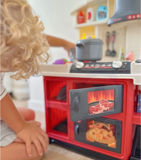 - Interaktive effekter: belyste brændere samt lyde af madlavning og stegning.