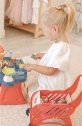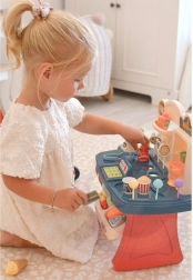 Kasseapparat med realistiske lyd- og lyseffekter, der forbedrer legeoplevelsen.