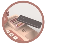 Pengekassen åbnes med knappen OPEN, terminalen bipper ved at holde kortet hen, og der er også leg med betaling via smartphone.
