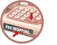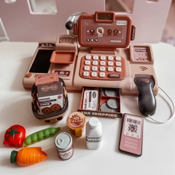 Scan sættets varer med den velkendte lyd, læg dem på vægten og indtast prisen. Børn oplever et rigtigt indkøb fra A til Z.