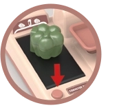 - Kasseapparat, scanner, vægt, mikrofon, betalingsterminal, kurv, frugt og grøntsager, kiks, vandflaske, cola, is, betalingskort, sedler, mønter, telefon (i alt ca. 25 tilbehør)