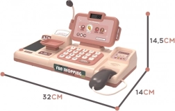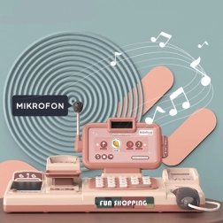Kasseapparatet taler engelsk, spiller sange og klassiske melodier. Den fungerende mikrofon giver ekstra spilleglæde til den lille ekspedient.