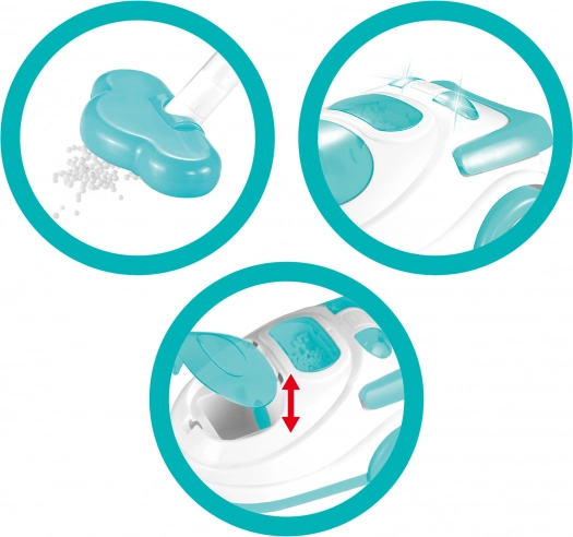 - Indeholder plastikkugler til bekvem "støvning".
