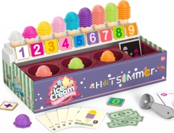Bliv is-sælger med et sæt, der ikke kun underholder, men også uddanner. Børn lærer at tælle, skelne mellem farver og løse enkle matematikopgaver ved hjælp af bestillingskort. Sættet muliggør rolleleg, som hjælper med at udvikle kommunikative evner og reducere stress i hverdagssituationer.