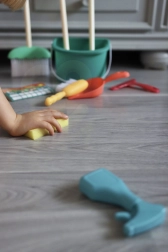 Woopie rengøringssæt er en højt realistisk efterligning af rigtige værktøjer til rengøring. Sættet er perfekt tilpasset til børnehænder og fremmer rolleleg, hvilket positivt påvirker udviklingen af ansvar og bevidsthed om pligter.