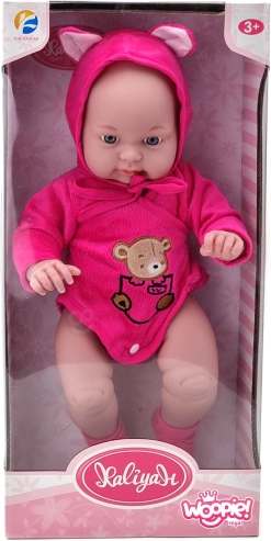 Babydukke Woopie vil blive enhver barns favorit! Den er 46 cm høj og klædt i en lyserød dragt med hætte og små sko. Med dette legetøj lærer børn empati og ansvar.