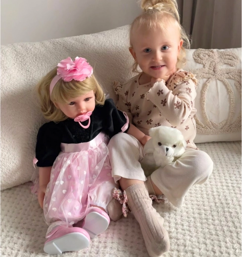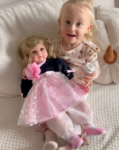 Dukken har smukt, langt og glansfuldt hår, fine øjenvipper og detaljerede små hænder – ideelt til kreative frisurer og realistisk leg.