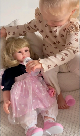 De interaktive funktioner støtter kreativ leg: dukken griner, når hun løftes, laver glade lyde ved kram, kan græde, og når du lægger hende på ryggen, småsnorker hun og ånder som i søvne. Når hun lægges på maven, viser hun utilfredshed. Tøjet kan let tages af og vaskes, så legen altid er ren og klar.
