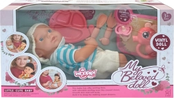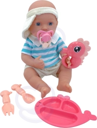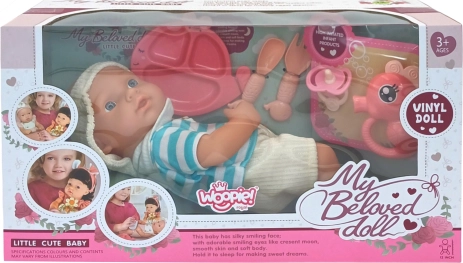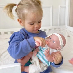 Dette plejesæt er et fremragende valg til børn, der elsker at efterligne voksne og udvikle fantasien. Den realistiske dukke har en blød, behagelig krop og bevægelige lemmer og hoved, så den let kan sættes og lægges. Takket være det let aftagelige tøj træner børn både finmotorik og omsorg for babyen.