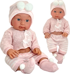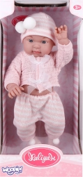 Den søde dukke Lily fra mærket WOOPIE i serien ROYAL ligner en rigtig baby og indbyder direkte til at blive krammet. Hun har en blød lyserød cardigan med bånd, stribede trusser og en let aftagelig hue med kvaster. Takket være de bevægelige lemmer er den ideel til rollelege, udvikling af empati og finmotorik – den perfekte gave til små omsorgsgivere.
