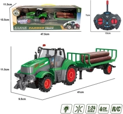 Denne detaljerede traktor med aftagelig kærre og fem træstammer tager børnene direkte ud på landet. Takket være den enkle fjernstyring og robuste konstruktion er den ideel til daglig leg på værelset og på gulvet.