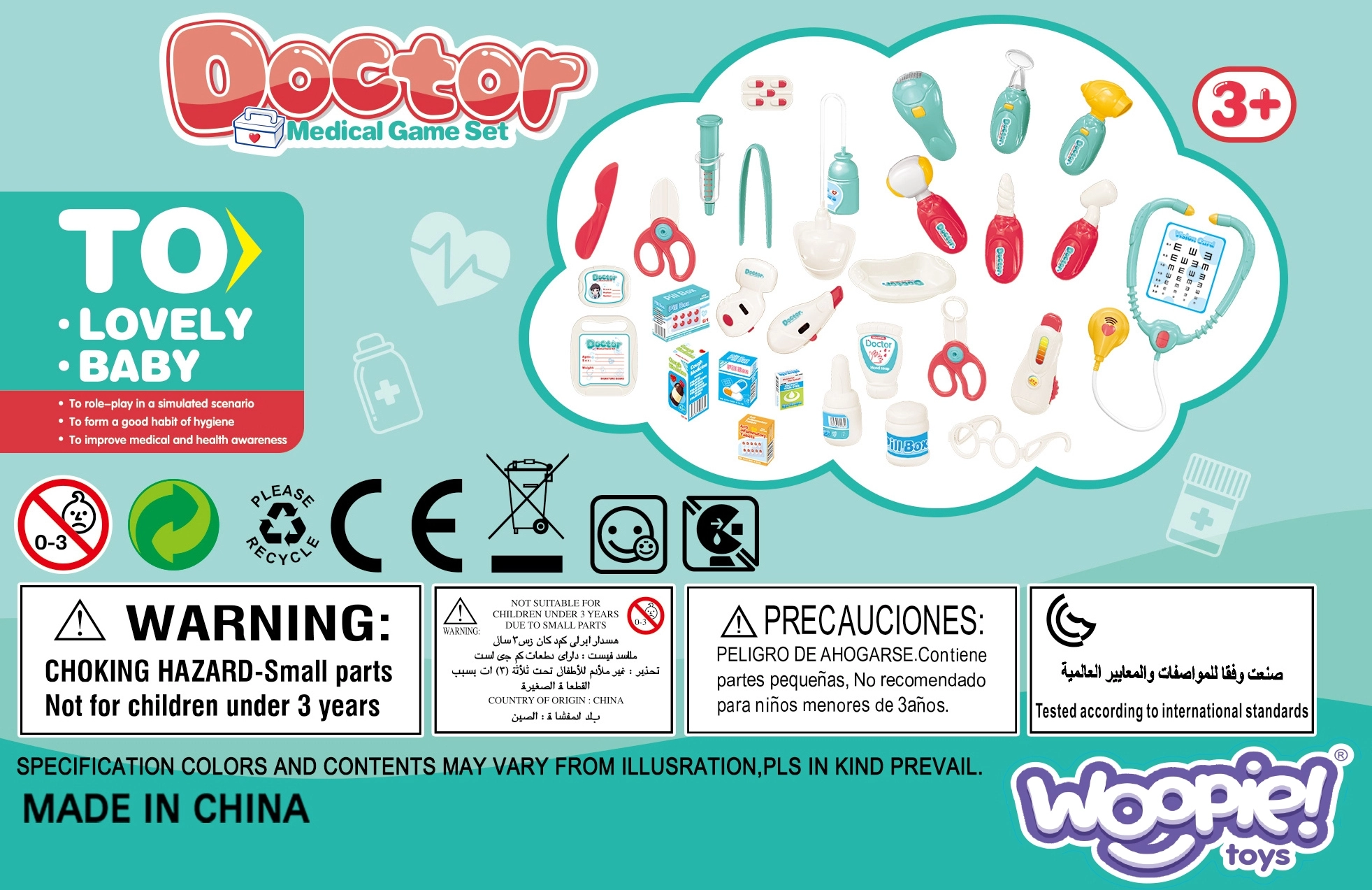 Sjov for fremtidige læger! Lille lægesæt fra Woopie er den perfekte gave til hvert barn, der drømmer om en karriere som læge. Dette sæt indeholder forskellige lægeredskaber som stetoskop, blodtryksmåler, termometer og meget mere. Hvert redskab er udstyret med specielle funktioner, så barnet kan føle sig som en rigtig læge.