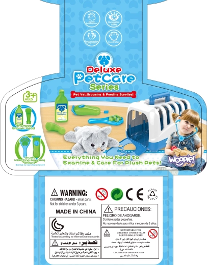Det lille dyrlægesæt fra WOOPIE er ideelt til børn fra 3 år, som elsker dyr og rollelege. Det indeholder alt, hvad der er nødvendigt for at passe en plyshund – fra børste til shampoo – og lader børn efterligne den virkelige pleje af kæledyr.