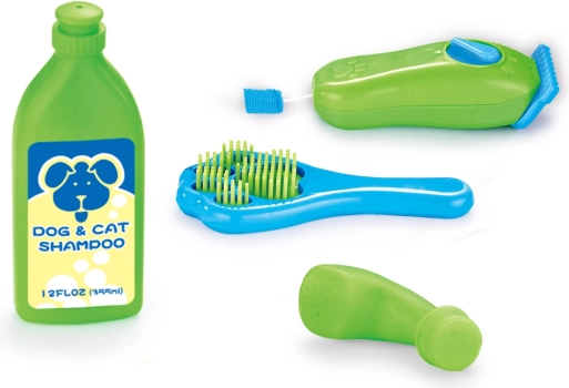 Børste, shampoo, dispenser og trimmer understøtter kreativ rolleleg og lærer grundlæggende hygiejne og kæledyrspleje.