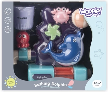 Det sjove WOOPIE vandlegetøj til badekar forvandler hvert bad til et show. Hæld vand i den øverste beholder og se strømmen løbe forbi krabben, sætte søstjernen i rotation, aktivere vandmøllen ved den lille delfin og løbe ud af den sideplacerede hane. Takket være 3 sugekopper sidder den sikkert fast på badekar eller fliser og hjælper med at udvikle finmotorik, koncentration og fantasi. Velegnet fra 18 måneder.