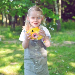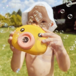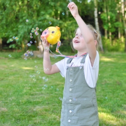 Boblemaskine kylling WOOPIE er det ideelle legetøj til børn fra 3 år. Nem betjening med On/Off-knap, rig bobleproduktion og let konstruktion gør den til den perfekte ledsager i haven, på legepladsen og til børnefødselsdage.