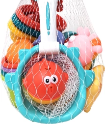 Badesættet indeholder forskellige legetøj, der bringer endeløs sjov i badekarret.
