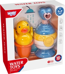 Mød det perfekte sæt til sjov i badet fra Woopie! Sættet inkluderer en lille and, en sæbedispenser og en farverig kop, som giver børn timevis af underholdning i badekarret! Sæbedispenseren renser ikke kun, men skaber også blød skum af sæbe, hvilket giver masser af sjov.