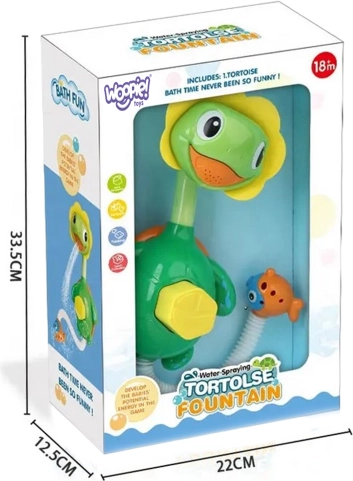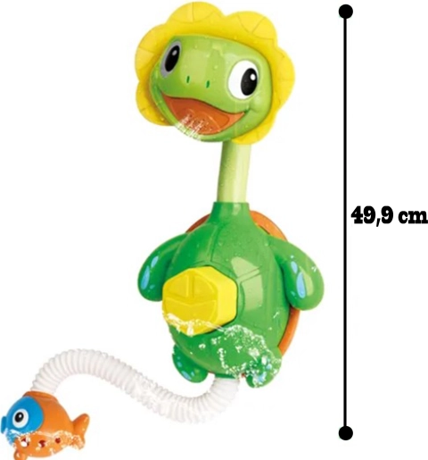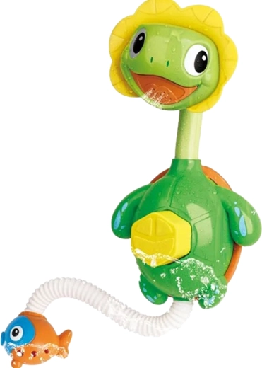 Opdag et sjovt badlegetøj, der forvandler rutinebadet til et festligt show. Når du trykker på maven, føres vandet op i hovedet og sprøjter ud som en bruser fra skildpaddens ansigt. Med den elastiske slange med fisk kan børn nemt styre vandstrålen og rette den derhen, hvor de vil.