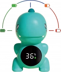 Den søde dinosaurformede termometer fra WOOPIE gør det nemt at holde øje med en sikker temperatur ved badning og i børneværelset. Takket være den digitale skærm ser du hurtigt værdien, mens farvesignaler hjælper med at genkende den ideelle vandtemperatur til børn. Det kompakte og sikre design i behagelige materialer er velegnet til daglig brug, og det sjove design vil blive elsket af både børn og forældre.