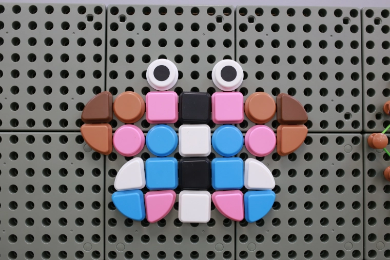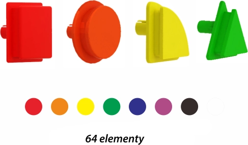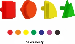 Leg med dette sæt stimulerer logisk tænkning, kreativ underholdning og udvikler både fin- og grovmotorik. Knopperne fås i 4 forskellige geometriske former og 8 farver, hvilket giver stor kreativ variation.