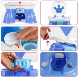 Den første potte til børn fra WOOPIE gør pottetræningen nemmere og hurtigere. Den tilbyder 3-i-1 funktion – potte, skammel til vasken og børnestol. Den har et bredt ergonomisk sæde, sidehåndtag og en stabil base for sikkerhed og komfort. Indbyggede melodier kan tændes eller slukkes når som helst. Potten er nem at tømme og rengøre og er fremstillet af materialer af høj kvalitet og sikkerhed.