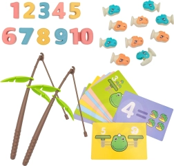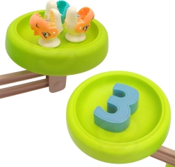 Efter læringen følger legen: magnetiske stænger med små “blade” forvandler sættet til et sjovt dinofiske-/fiskespil, som udvikler koordinationsevner, tålmodighed og finmotorik. Den solide base med en sød dinosaur sikrer stabilitet og tryg leg.