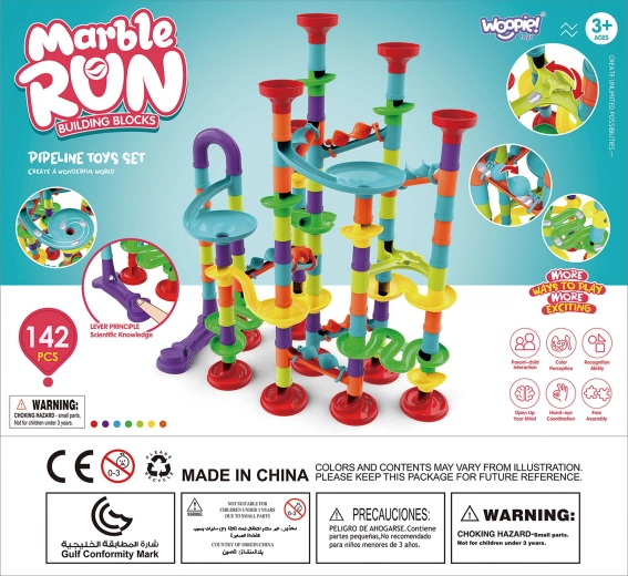 Farverig spiral-kulodrom WOOPIE med 142 dele giver uendelig sjov og læring. Børn kan nemt samle og frit forbinde elementer til originale baner; der medfølger også en affyrer og kugler. Den ideelle delestørrelse understøtter hånd–øje-koordination og finmotorik.