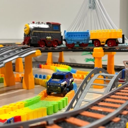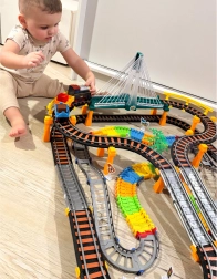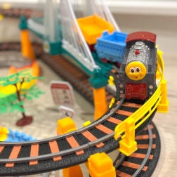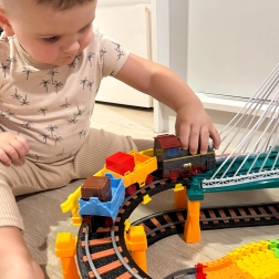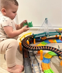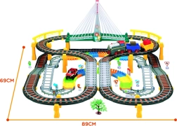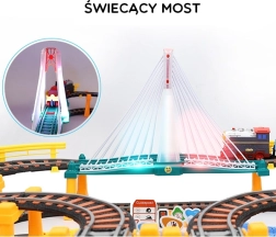 Dette store kreative WOOPIE-sæt kombinerer to populære lege: elektrisk tog og racerbil. Takket være de adskilte kredsløb kan børn køre med tog og bil samtidig, bygge forskellige banekonfigurationer og se, hvordan toget passerer en to-niveaus viadukt med lyseffekter.