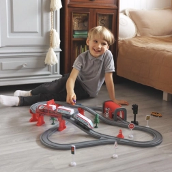 Denne elektriske togbane er den perfekte gave til børn fra 3 år, som elsker at lege med tog og biler. Det sjove sæt med 80 dele tilbyder ubegrænsede muligheder for at udvikle rumlig orientering, teknisk sans og kreativitet. Togbanen indeholder et moderne batteridrevet lokomotiv, en bro, en tunnel og andet tilbehør, der understøtter udviklingen af børns færdigheder.