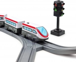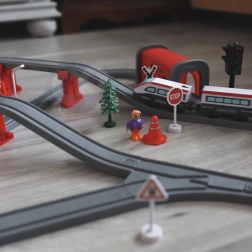 Lokomotivet og tilbehøret har et realistisk look i et moderne design, hvilket både giver børnene sjov og grundlæggende kendskab til trafikale signaler.