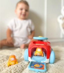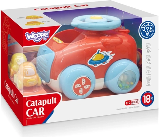 Woopie Børne Katapultbilsæt er et ideelt valg til interaktiv leg for børn fra 18 måneder. Dette legende og lærerige legetøj inkluderer 2 mindre biler, som kan placeres i den større bil og nemt affyres ved hjælp af katapulten.