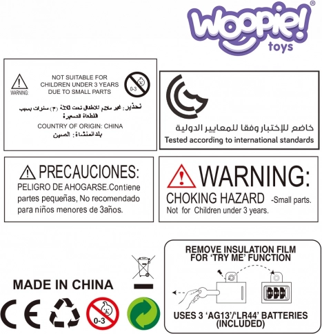 - Legetøjet indeholder små dele – kvælningsfare, ikke egnet til børn under 3 år