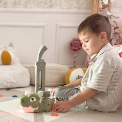 Oplev magien ved dominobaner med den søde grønne dinosaur, der “puster” brikker ud i en perfekt række. Fyld blot magasinet, tryk på knappen, og se, hvordan legetøjet automatisk lægger domino på gulvet. Lys- og lydeffekter gør legen endnu sjovere og motiverer børn til flere eksperimenter.