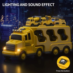 Børnesæt fra WOOPIE med stor bugseringslastbil og fire byggekøretøjer giver timer med kreativ leg. Den store transporttrækker fungerer også som opbevaring til de mindre køretøjer. De små maskiner har friktionsmotor for at kunne køre selv, og hele sættet byder på lys- og lydeffekter (3× AA, medfølger ikke). Velegnet til børn fra 3 år til leg inde og ude.