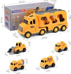 - 5-delt sæt: stor bugseringslastbil + 4 byggekøretøjer