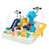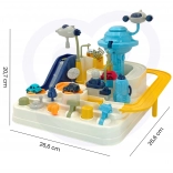 Udforsk det uendelige fantasiunivers med Woopies interaktive bilbane. Børn styrer køretøjerne med mekaniske håndtag, knapper og kontakter – helt uden batterier. Den sjove rumstation med affyringsrampe, bevægelige platforme og elevator træner finmotorik, logisk tænkning og hånd–øje-koordination.