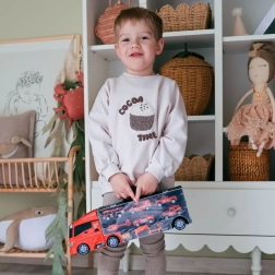 - Affyringsmekanisme: Børn kan placere en bil på transportørens tag, og efter et øjeblik bliver den affyret.