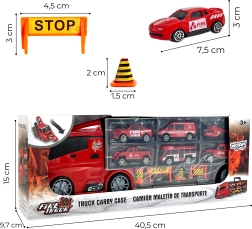 Denne legetøjssæt fra WOOPIE er ideel til enhver lille fan af brandkøretøjer, transport og action! Det består af en stor transporter, der rummer 4 brandbiler, en helikopter og ekstra advarselsskilte, hvilket giver legen ekstra realisme. Takket være affyringsmekanismen kan børn sende bilerne afsted over forskellige afstande. Transporteren er 40 cm lang, hvilket giver rigelig plads til alle køretøjer og tilbehør. Sættet stimulerer i høj grad børns fantasi og opfordrer til at skabe egne legescenarier.