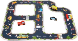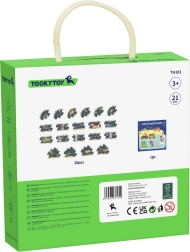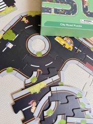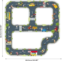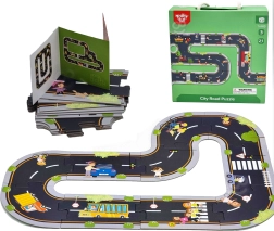 Byg din egen by og racerbane med puslespilsættet TOOKY TOY. Pakken indeholder 21 dele (vejpuslespil og en idébog med ruteforslag), som du kan bruge til at lave forskellige vejvarianter med kryds, rundkørsler og trafikelementer. Når det er samlet, får du en stor legeflade på op til 82,5 × 82,5 cm, der udvikler børns finmotorik, kreativitet og fantasi fra 3 år.