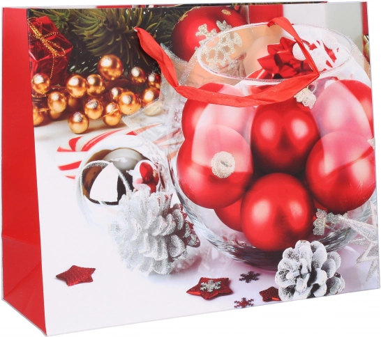 Gør julegaveindpakningen nemmere med en praktisk papirpose i størrelse M. Takket være de alsidige mål 26 (b) × 32 (h) × 10 (d) cm rummer den komfortabelt mange typer gaver – fra bøger og spil til kosmetiksæt. De elegante julemotiver giver din gave et festligt præg uden unødvendigt gavepapir.