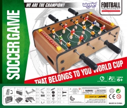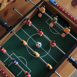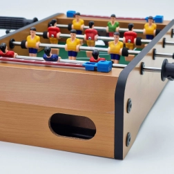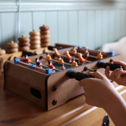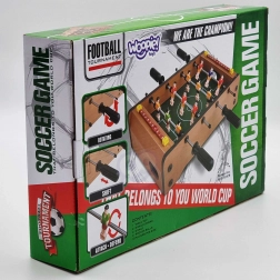 Nyd spændende minikampe med den kompakte WOOPIE bordfodbold. Stabil trækonstruktion, metalstænger og ergonomiske håndtag sikrer jævn figurkontrol og behageligt spil. Integrerede måltællere på begge sider hjælper dig med at følge kampens forløb.