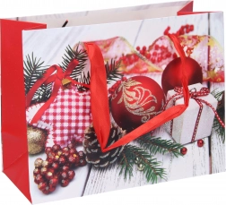 Elegant papirgavepose med julemotiv gør det nemt at pakke mindre gaver ind. Den kompakte størrelse S og målene 18 × 23 × 10 cm er ideelle til hurtig og pæn indpakning uden at klippe og tape.