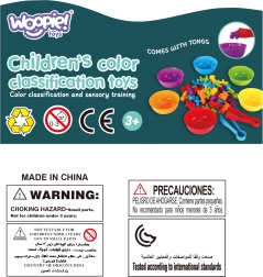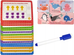 Sættet tilbyder forskellige værktøjer til at lære at tælle, farver og engelsk ved hjælp af kort og figurer.