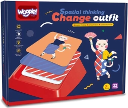 Opdag det smarte børnespil Woopie Planlæg outfit, som kombinerer sjov, læring og logiske udfordringer. Børn træner analytisk tænkning, kreativitet og genkendelse af farver og mønstre ved at sammensætte de rigtige tøjkombinationer efter opgavekortene. Der venter dem 48 opgaver i tre sværhedsgrader og fire søde helte – en kat, en flodhest, en kanin og en dinosaur.