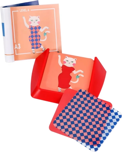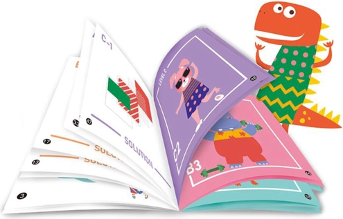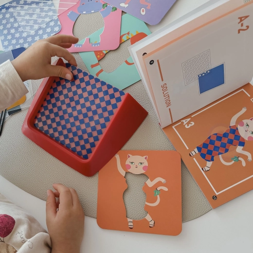Sættet indeholder en stabil stander, fire figurskabeloner og et farverigt udvalg af mønsterkort samt en opgavebog med løsninger. Spillet udvikler smukt rumlig sans, finmotorik og visuel perception af former, farver og mønstre. Perfekt som en pædagogisk gave til førskolebørn.