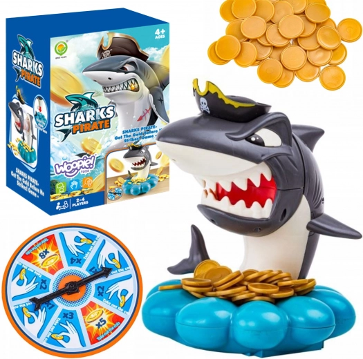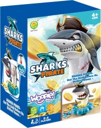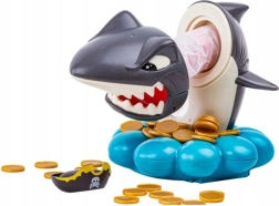 Kast guldmønterne i muslinge-basen, drej pil-hjulet, og tag præcis det antal mønter, du får. Men pas på – hajen vogter over sit piratbytte og kan springe frem når som helst. Den, der udløser hajen, taber. Enkle regler, spænding i hvert træk og fængende lydeffekter gør det til et ideelt familiespil.