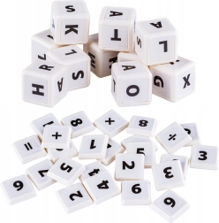 - 32 kort, 1 bakke, 10 bogstavklodser, 20 tal-klodser, 5 symbolklodser
